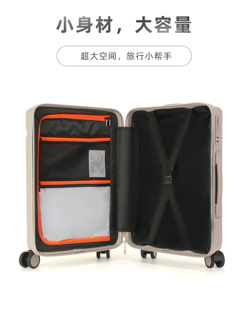 PLOVER香港啄木鸟28英寸时尚旅行箱 GD2721-28 外部材质:PC 内部材质:涤纶+PVC 产品"规格:74*47*29CM 重量:5.26kg 瓦楞纸箱 颜色 :黑色,白色,咖色 1.纯PC材质 2.手机机架 3.侧边挂勾 4.铝材贴条装饰 5.三位数下沉式密码锁 6.万向轻音轮 7.防爆拉链 10.干湿分离层"