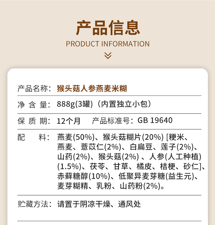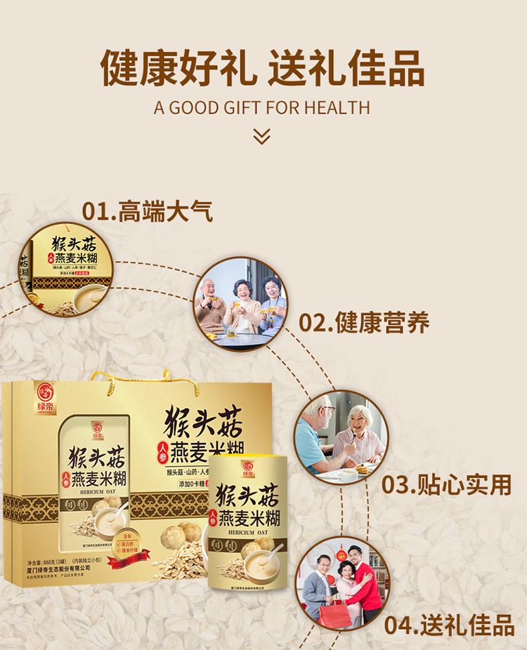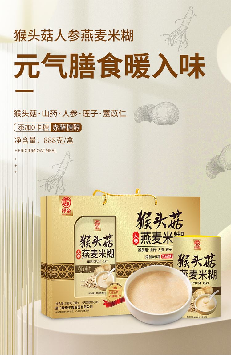 绿帝猴头菇人参燕麦米糊(礼盒)888g