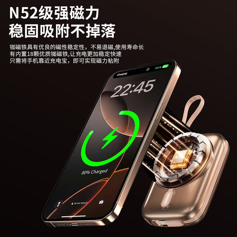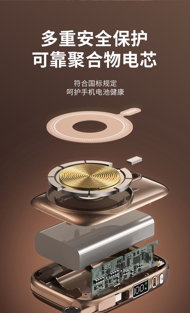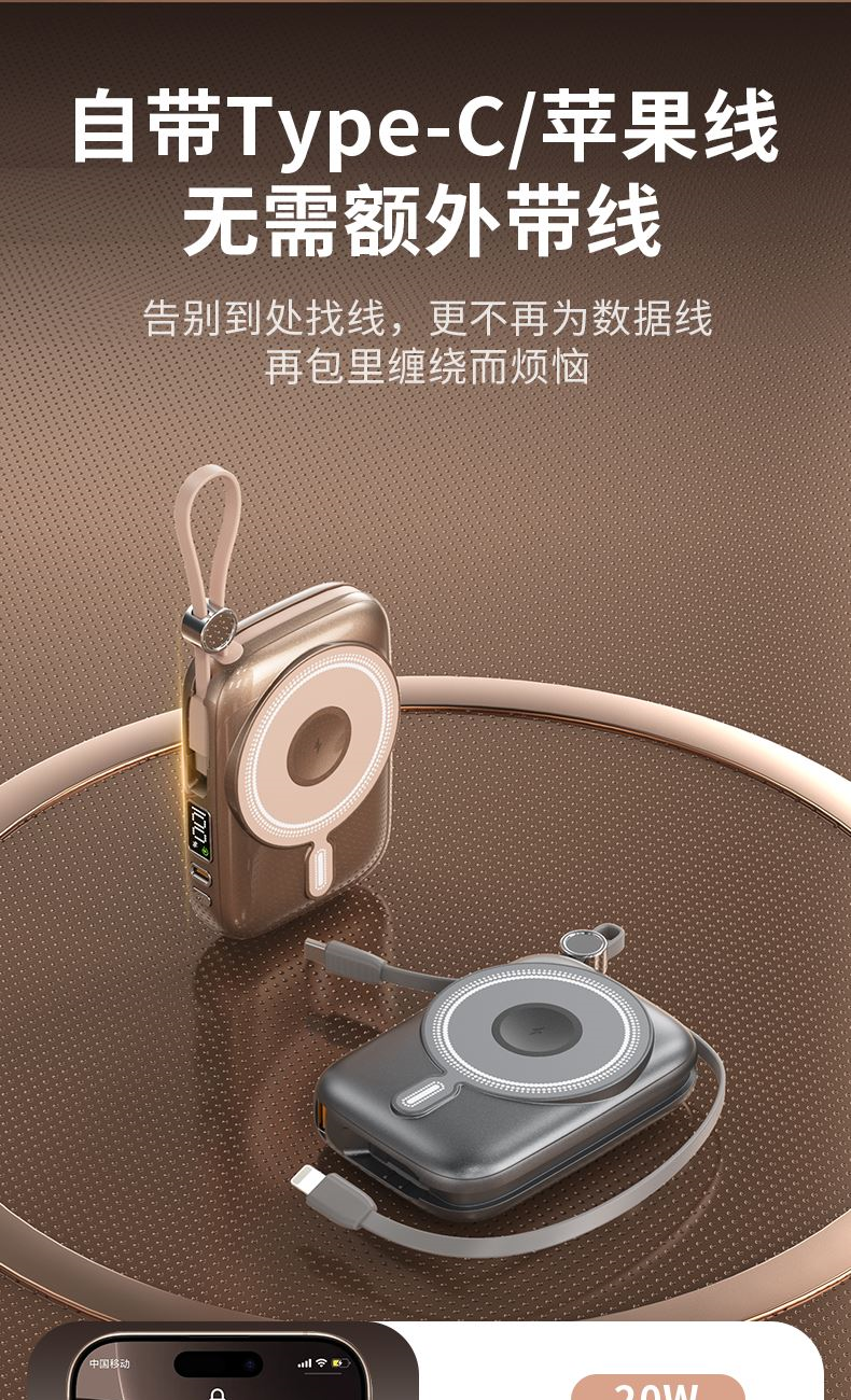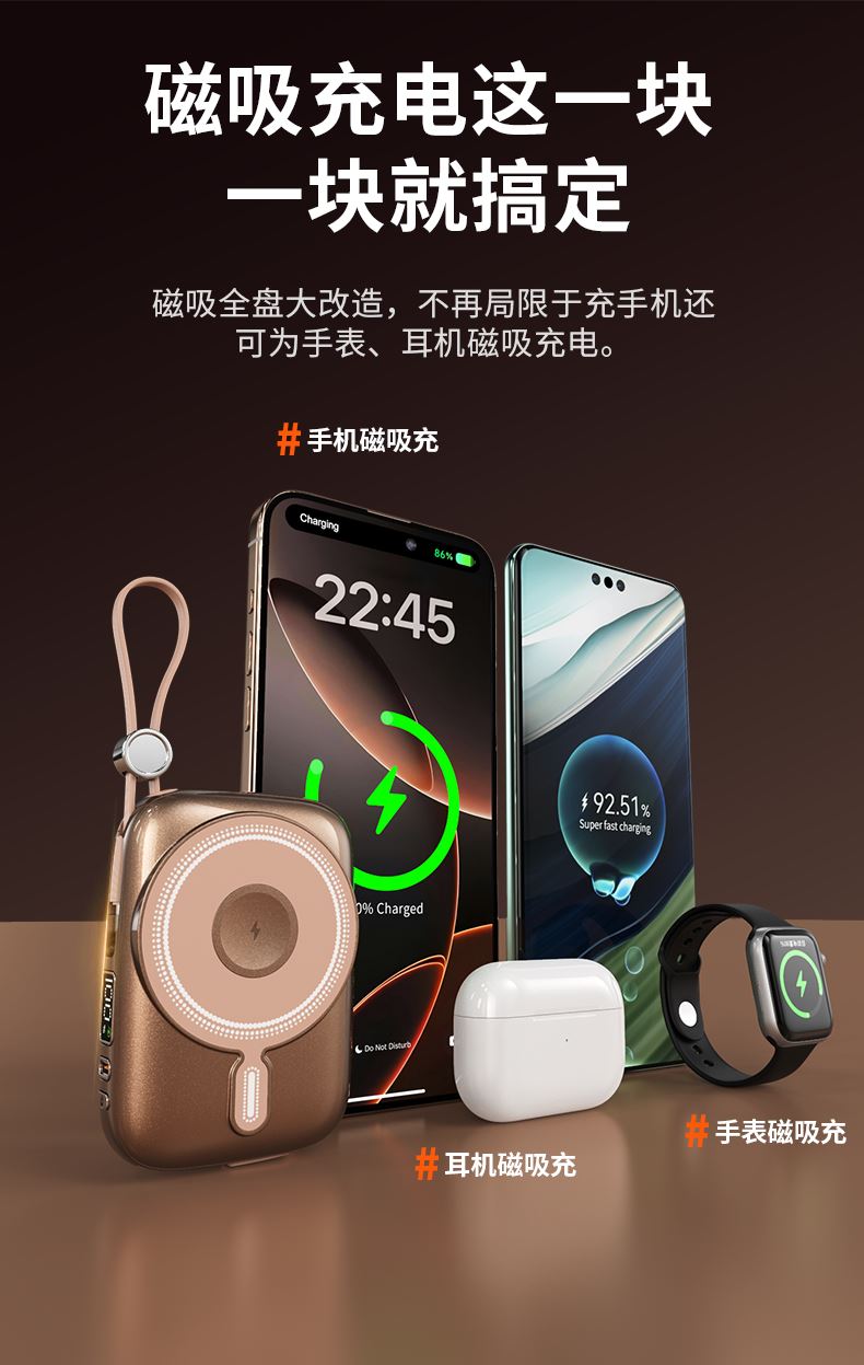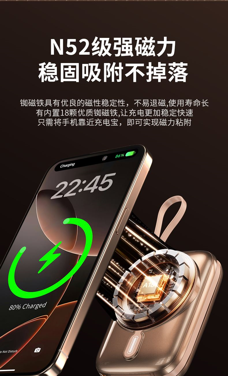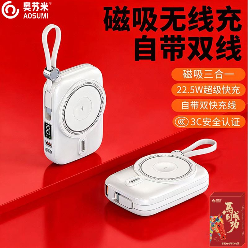 奥苏米开门红3C认证商务磁吸无线充快充移动电源