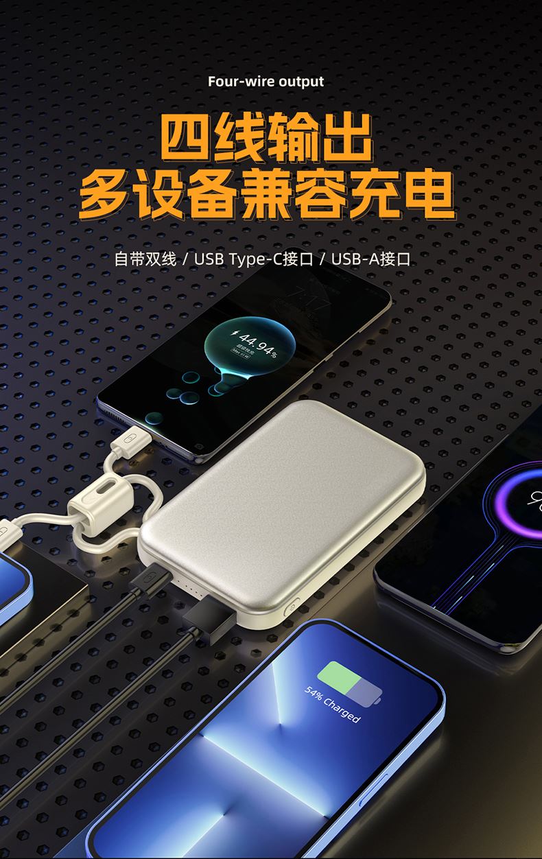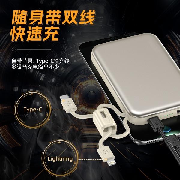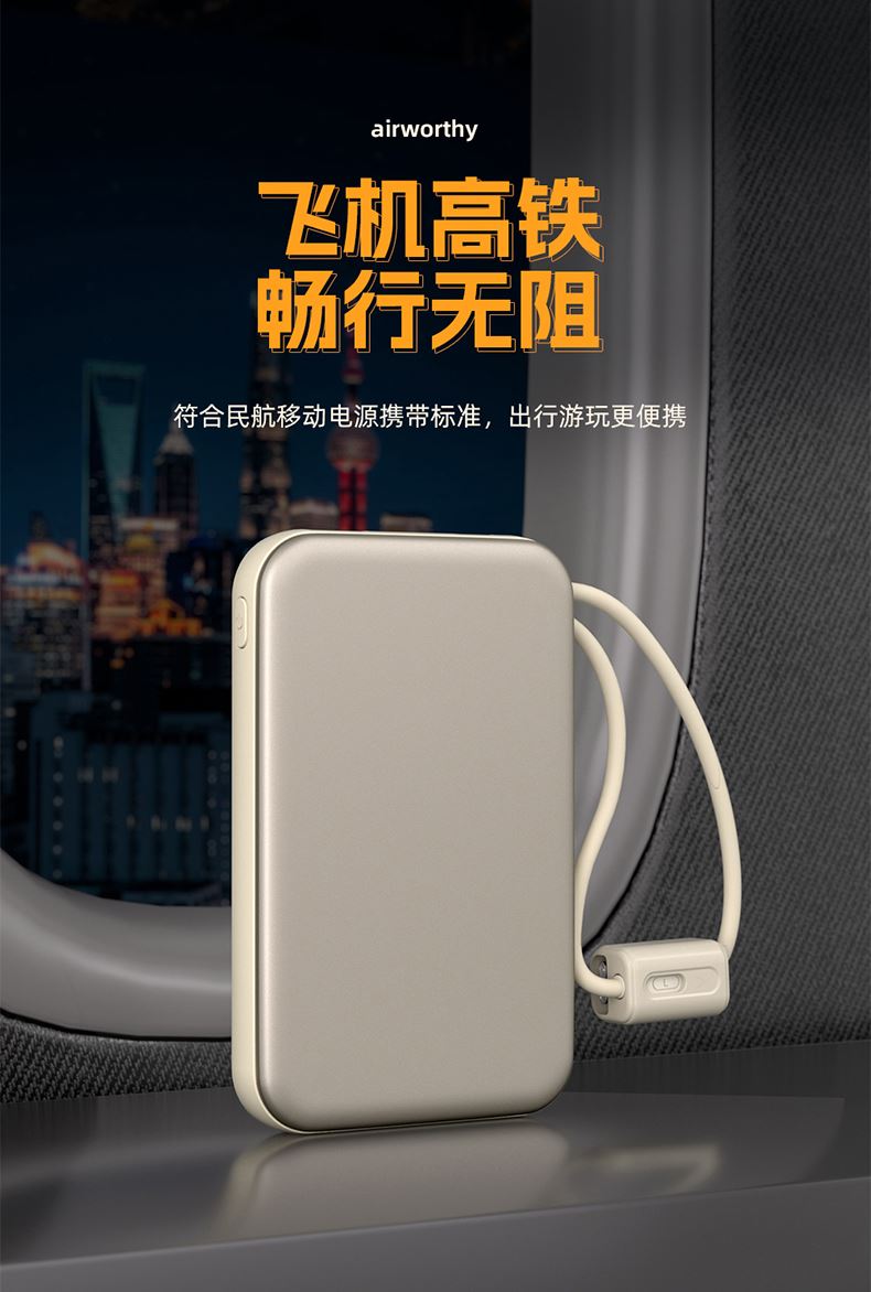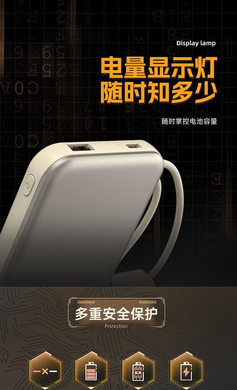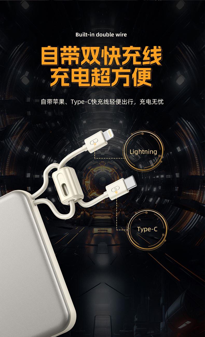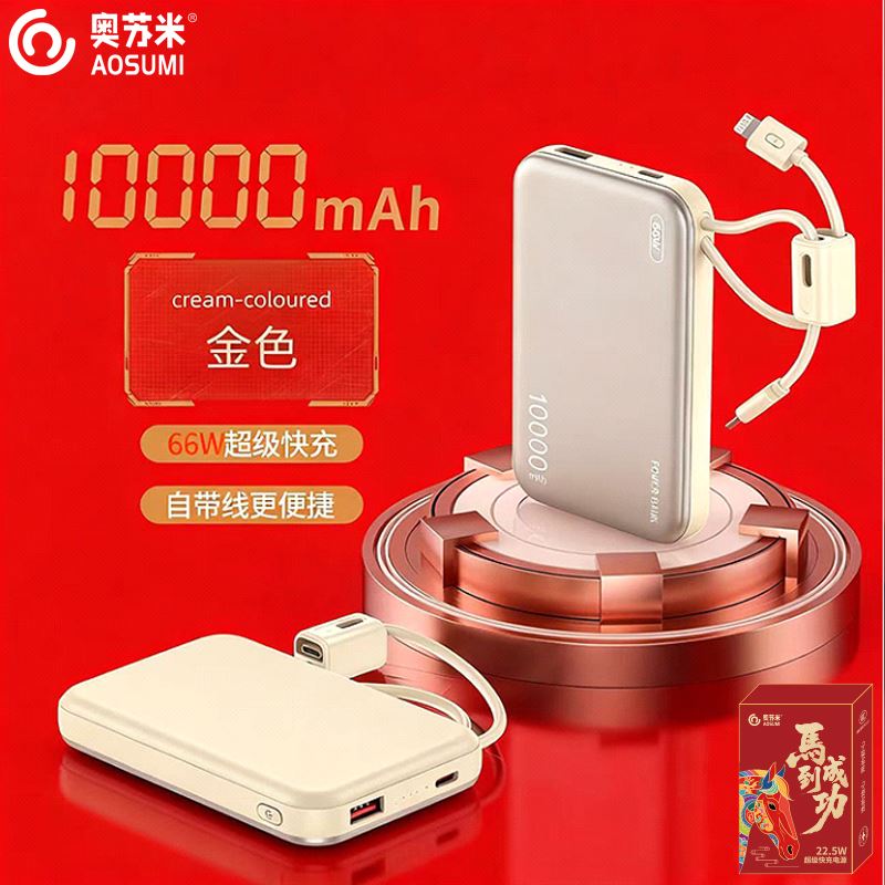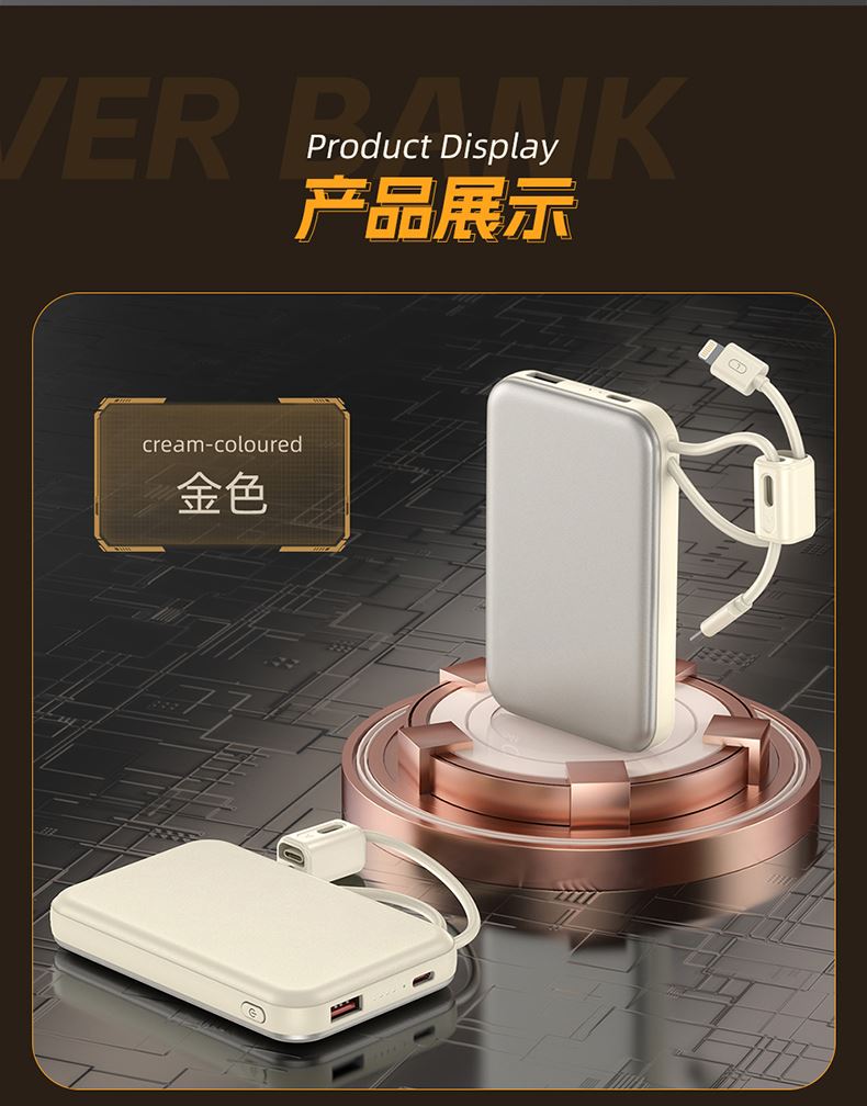奥苏米开门红3C认证刀锋22.5W铝合金商务移动电源R57N 型 号: R57N 电池 :聚合物*1pcs 电池类型 :聚合物动力电芯 容量:10000mAh / 20000mAh 材质 :ABS+PC 尺寸 :68*108*16mm 颜色 :常备米色 /蓝色/ 紫色 功能特点 简约设计风格,时尚大气; 22.5W超级快充,迅速充电; 10000mAh锂电池,澎湃动力; 自带苹果和Type-C充电线; 一输入三输出,支持苹果15手机 智能数显查看电量