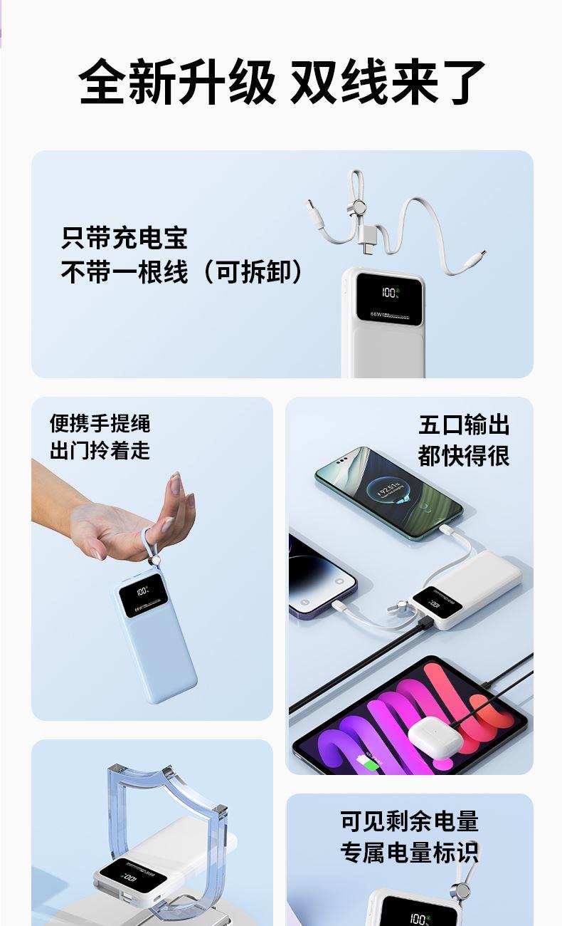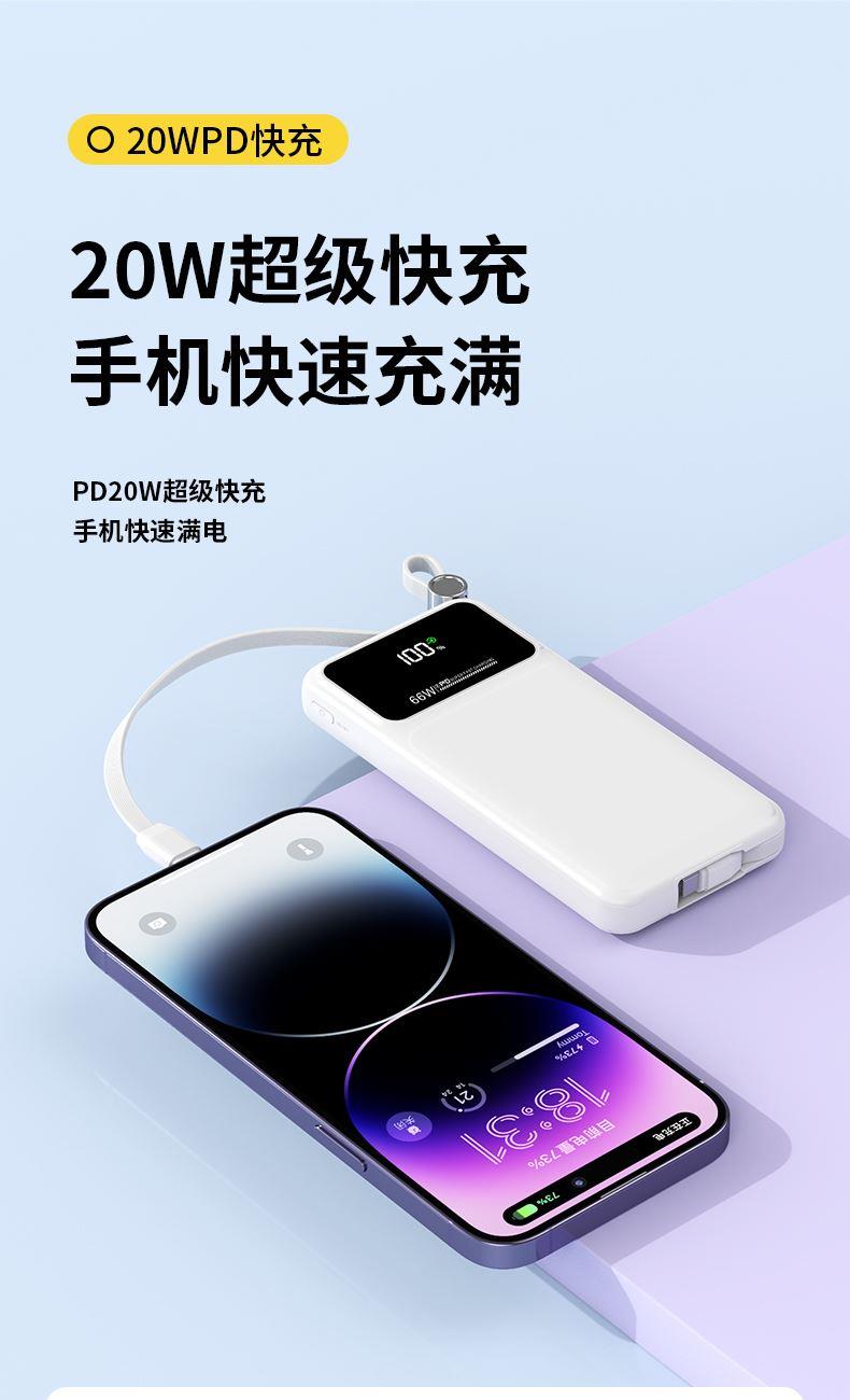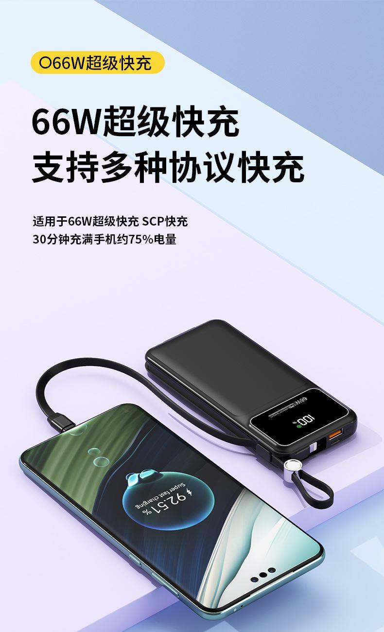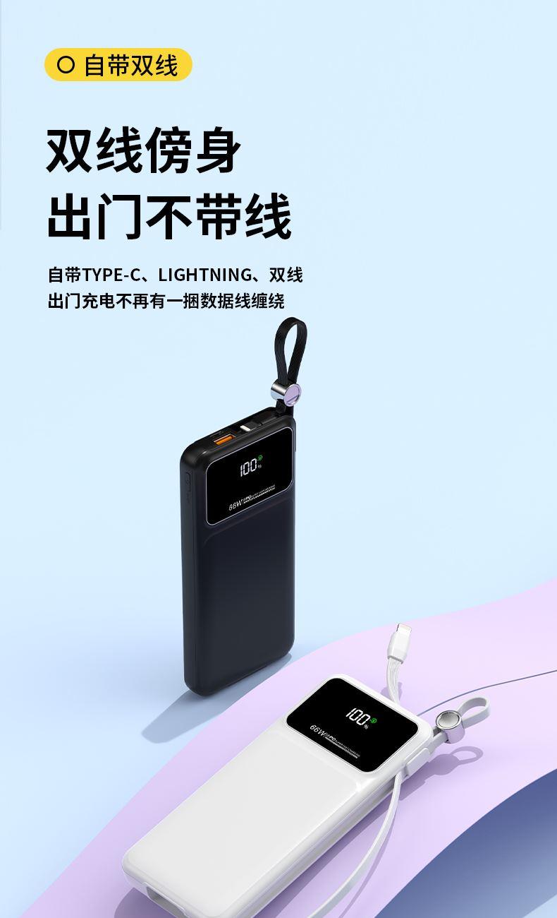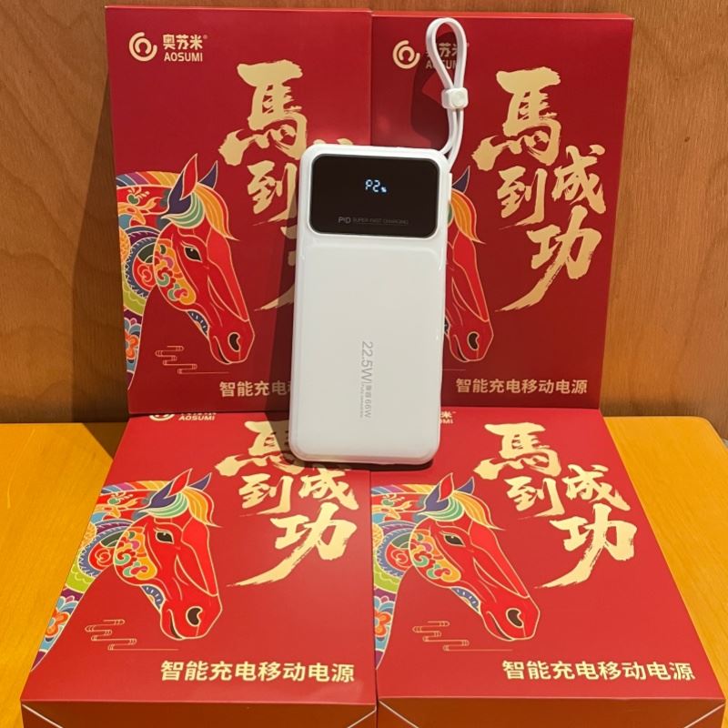 奥苏米开门红3C认证提绳超级快充内置线移动电源108A