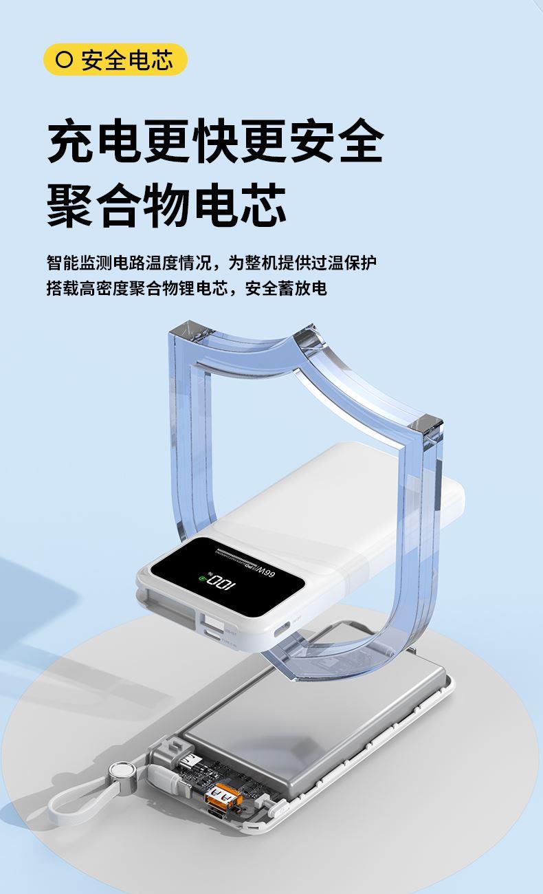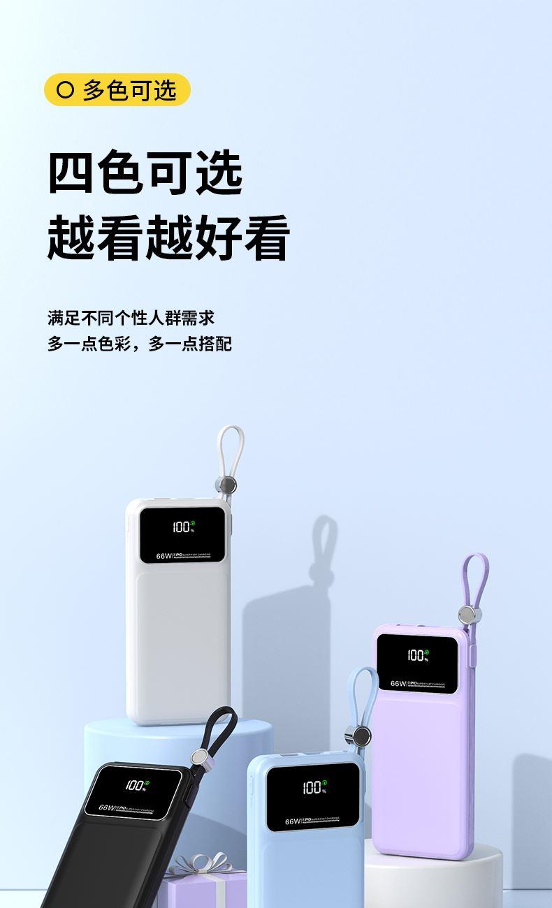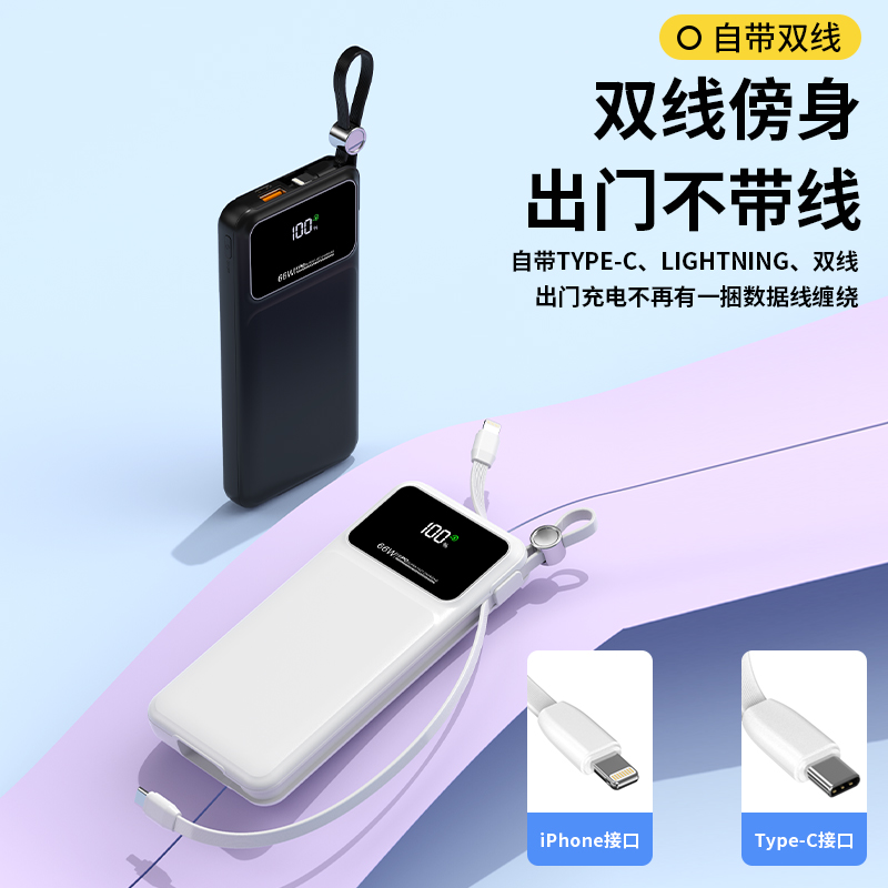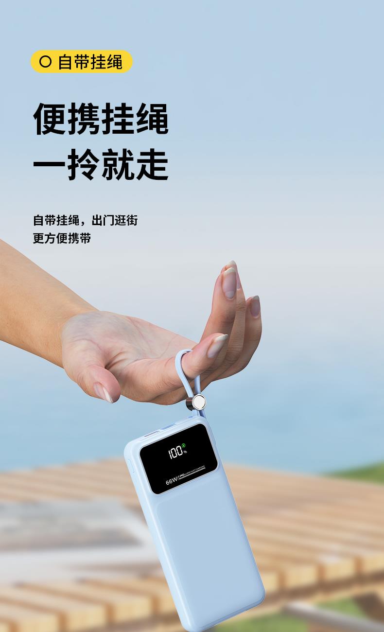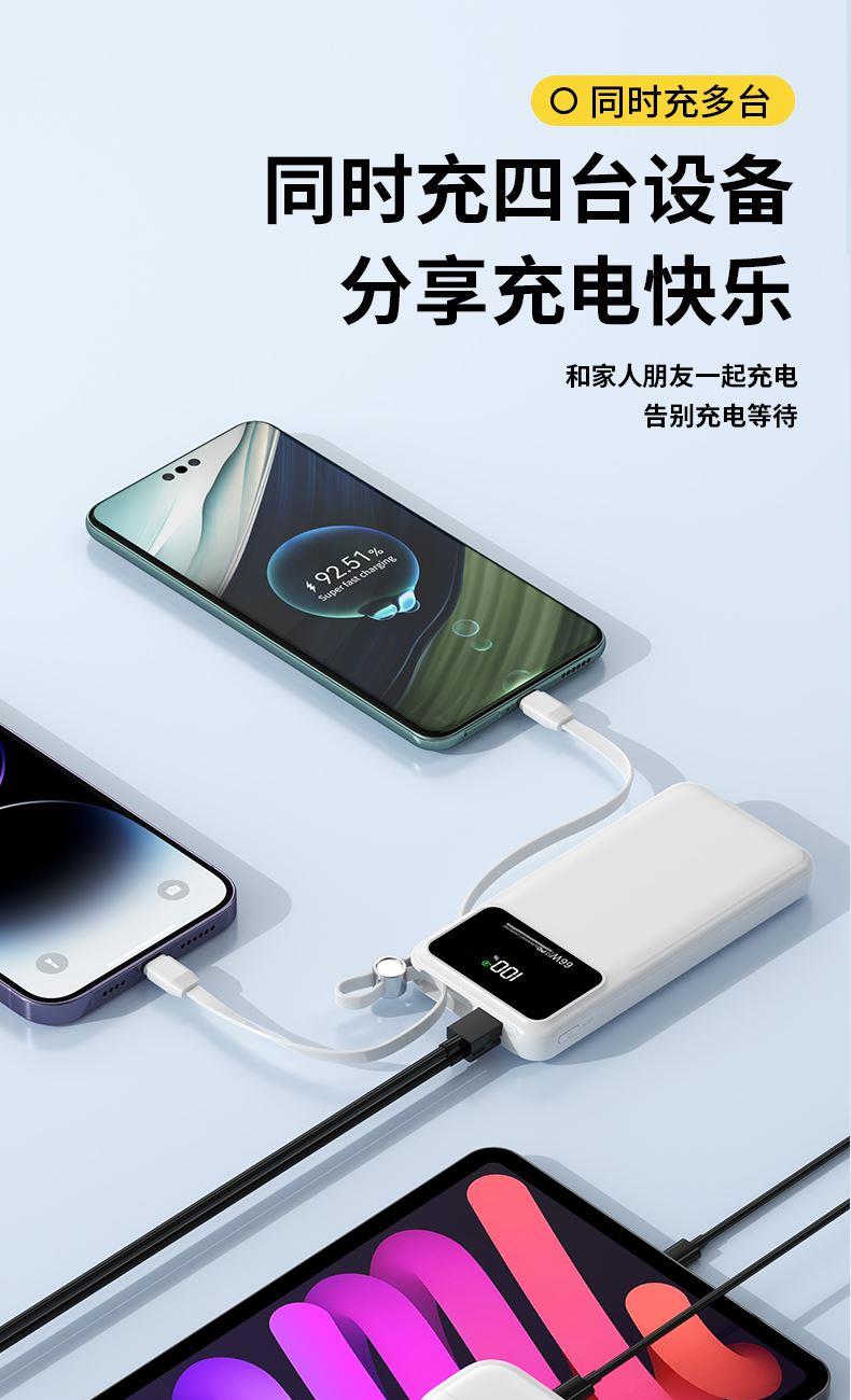 奥苏米开门红3C认证提绳超级快充内置线移动电源108A