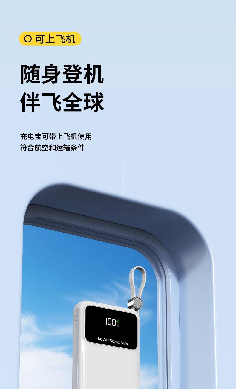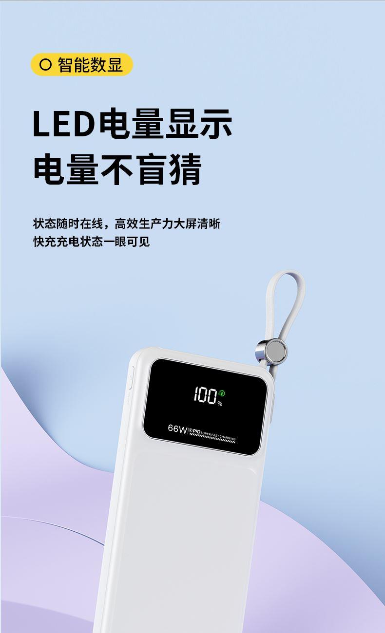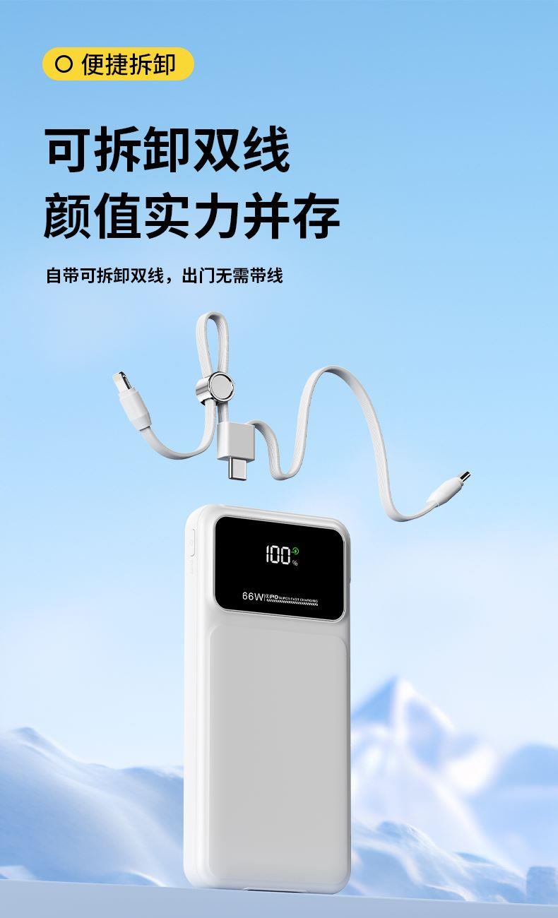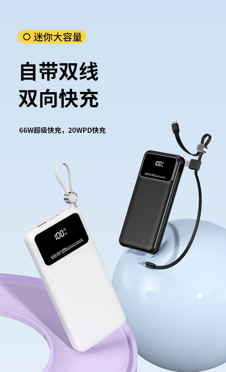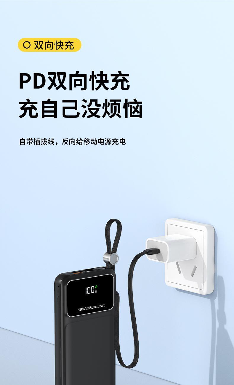 奥苏米开门红3C认证提绳超级快充内置线移动电源108A