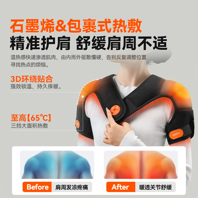 【巨能暖】16800mm²超大热敷面积,5秒速热,缓解酸痛一步到位 【多维按摩】2MM浮浪微振按摩,4个独立马达控制力度,刚柔有度 【材质介绍】外层OK布耐磨防泼水,中侧莱卡微弹面料贴合不移位,内层德绒亲肤锁温,冬季更暖 【版形设计】S/M双尺码+弹性布料,适配不同体型,佩戴无束缚感。